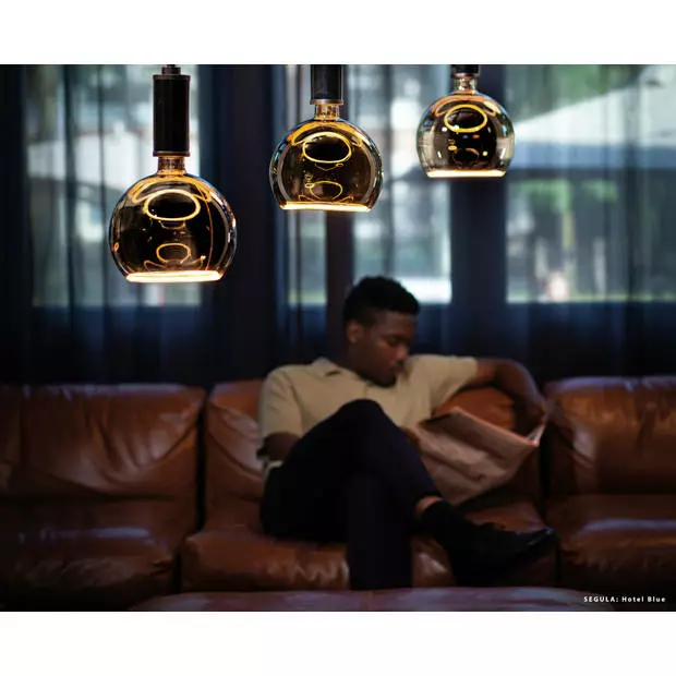 Deze Floating globe lamp van Segula is helemaal open en onder de lamp bevindt zich een mini LED strip die het licht omhoog en omlaag verplaatst. Door deze techniek ontstaat er een apart lichteffect en meer dan voldoende licht op tafel. Deze lichtbron is simpel dimbaar met een LED dimmer en verkrijgbaar in verschillende uitvoeringen in de kleuren Gold/amber en Smoke (grijs).