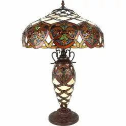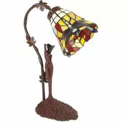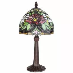 HAES DECO – Tiffany Tafellamp Creme, Bruin, Rood, Groen Ø 20×36 Cm Fitting E14 / Lamp Max 1x25W