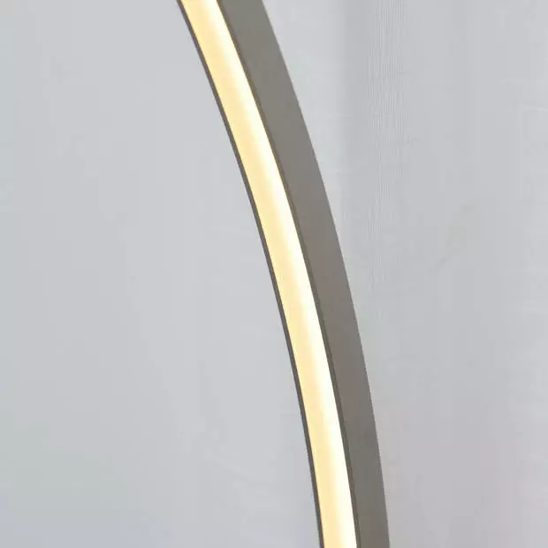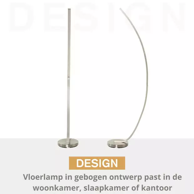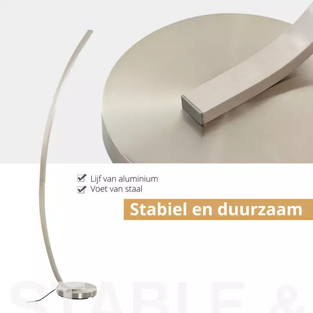 ? Stijlvolle en in het oog springende LED vloerlamp in gebogen vorm en zilverkleur